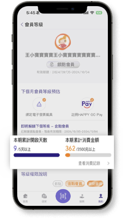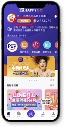 - 手機下載HAPPY GO App完成資料填寫成功註冊即為APP會員。