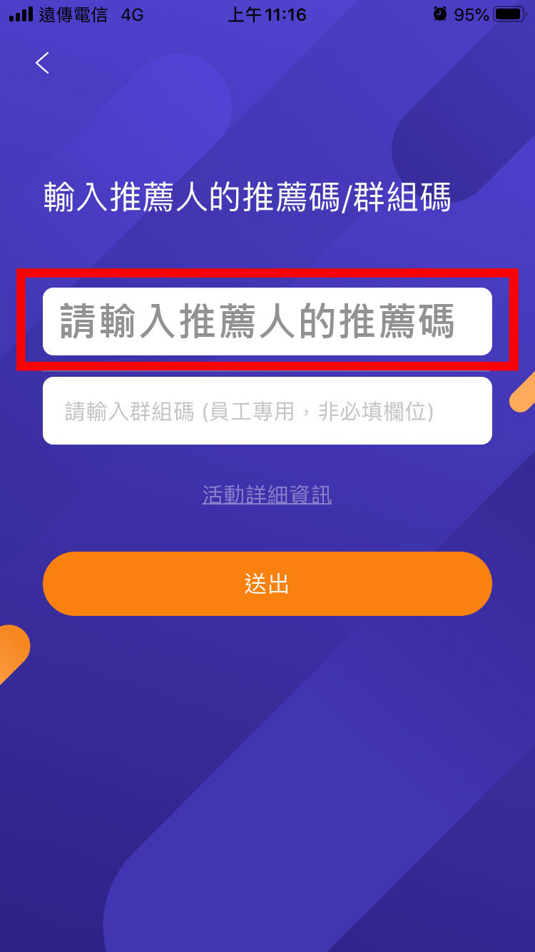 ※注意 : 一但填寫出推薦碼後即無法修改或變更